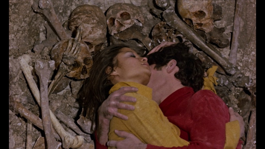 Françoise Pascal is ‘the woman’; Hugues Quester is ‘the man’. No names in this free-floating ether of existentialism. They meet briefly before their cemetery stroll—and that’s it. No meandering back stories, forget deep dives into motivation. They get lost in their surroundings (literally) and things turn very grave indeed.